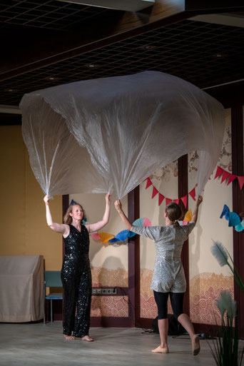 Tanz, Musik, Requisiten und Gedichte von Suni Löschner nehmen das Publikum mit zu Momenten, wo sie über das Einfache staunen können.