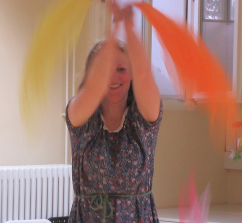 Materialien wie große Tücher, Bälle, Federn bringen neue Akzente in die Bewegungsvielfalt.